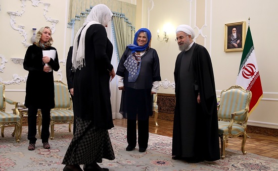 دیدار زن بلند قد با رییس جمهور ایران + عکس