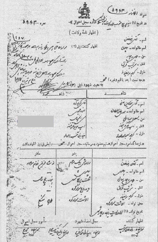 تصویر شناسنامه «رضا پهلوی»