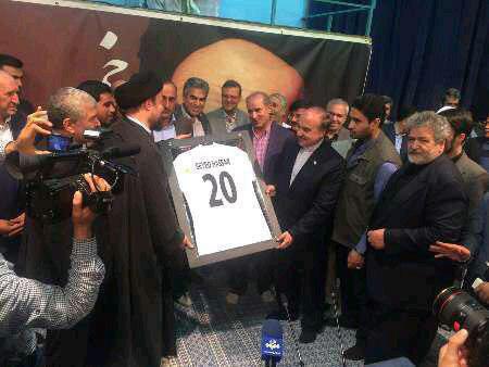 روزنو :پیراهن شماره 20 تیم ملی فوتبال ایران توسط وزیر ورزش و جوانان به سیدحسن خمینی اهداء شد.