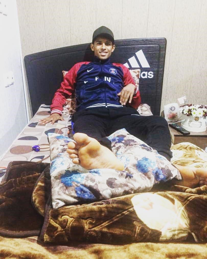این تصویری است از مهدی قائدی بازیکن استقلال که در حال استراحت در منزل است.