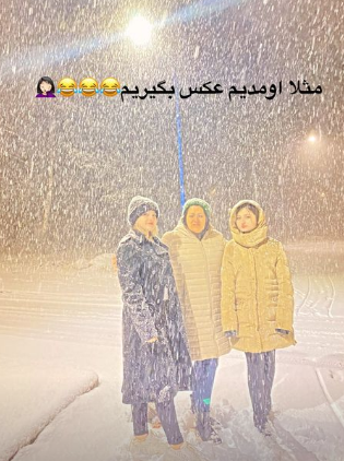 نیکا فرقانی با انتشار یک استوری درحالی که در کنار خواهرش سارا و مادرش ایستاده است عکسی منتشر کرده که در برف شدیده برای عکاسی ایستاده اند.