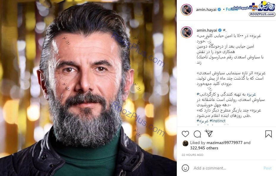 روزنو :امین حیایی هم با انتشار تصویری از خود از بازی در فیلم «غریزه» خبر داد: