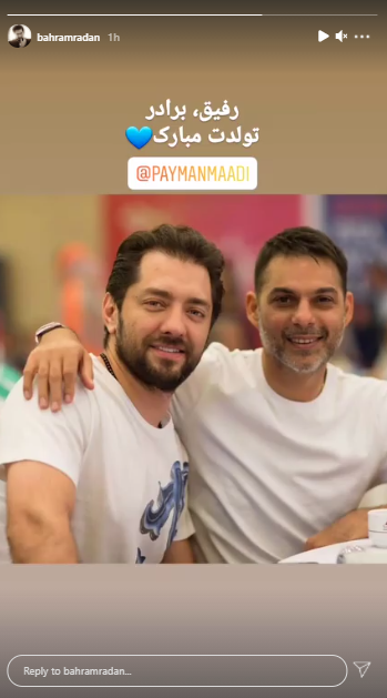 استوری بهرام رادان به بهانه تولد پیمان معادی +عکس