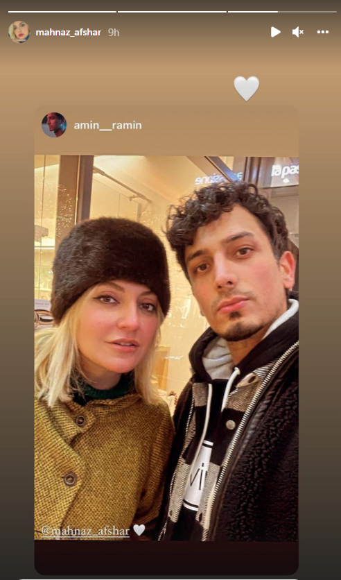 مهناز افشار (زادهٔ ۲۱ خرداد ۱۳۵۶) هنرپیشه سینما، تئاتر و تلویزیون اهل ایران است. مهناز افشار بازیگری را با مجموعهٔ تلویزیونی گمشده در سال ۱۳۷۷ آغاز کرد مهناز افشار در سال ۱۳۸۹ برای ایفای نقش در فیلم سعادت آباد، سیمرغ بلورین بهترین بازیگر نقش مکمل زن را از جشنواره فجر به دست آورد. مهناز افشار از سال ۱۳۹۸ در خارج از ایران زندگی می کند. مهناز افشار در استوری اینستاگرام خود، تصویرش را به همراه برادرشوهر سابقش به اشتراک گذاشته است. این طور که پیداست مهناز افشار قصد ازدواج مجدد با همسر سابقش، پس از آزادی او از زندان را دارد