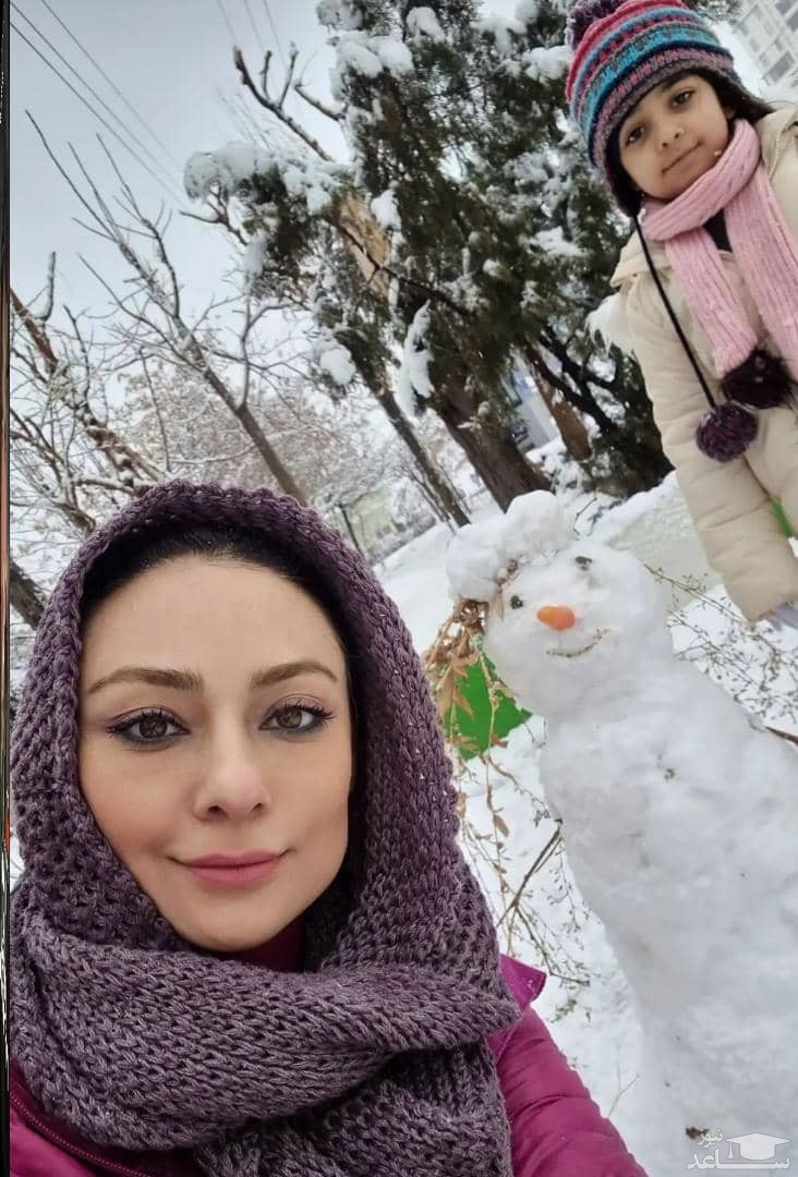یکتا ناصر و دخترش در حال ساختن آدم برفی + عکس