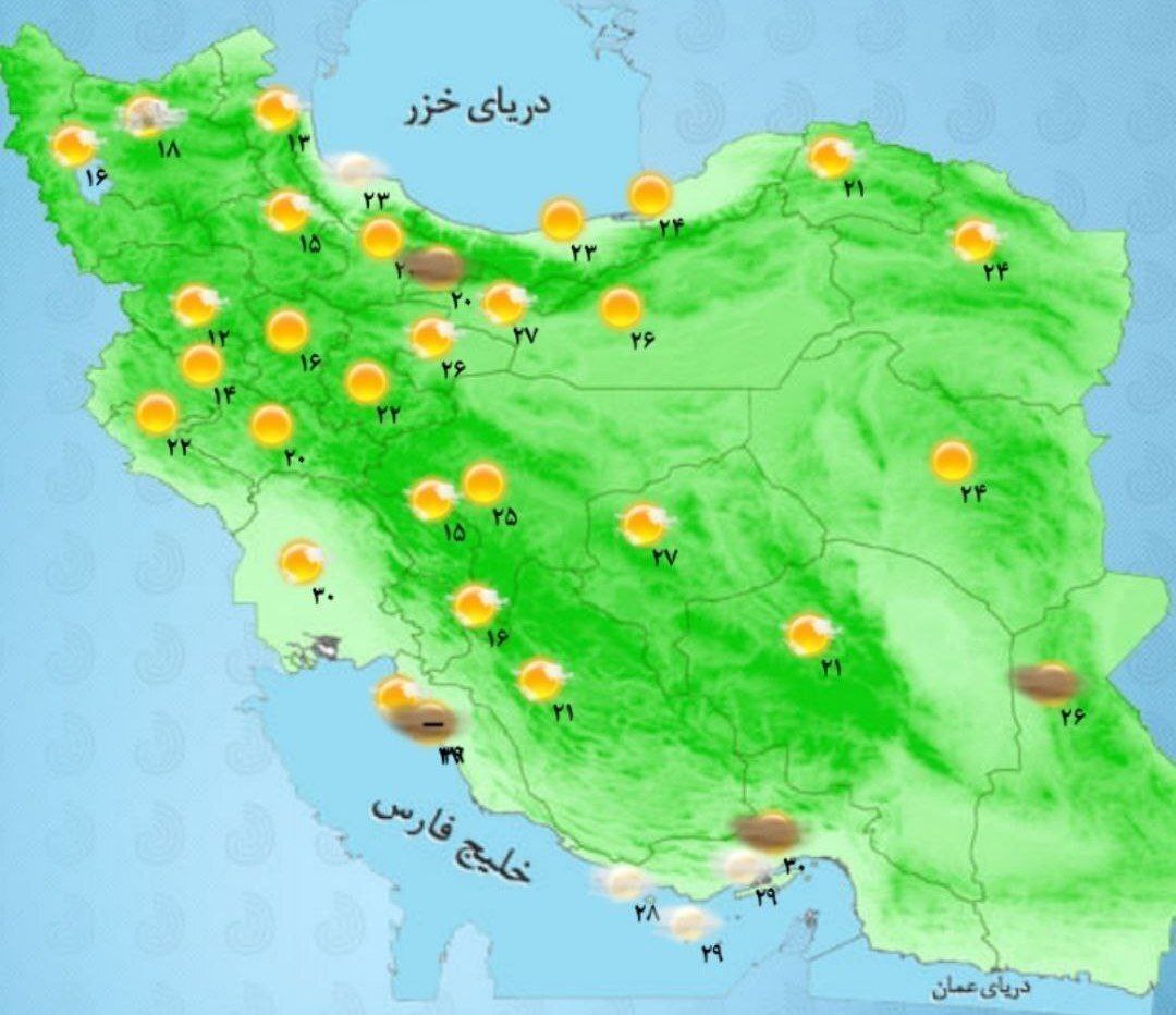 بیشینه دمای تهران امروز ۳۳ درجه سانتیگراد بالای صفر و کمینه دما ۲۳ درجه گزارش شده است.