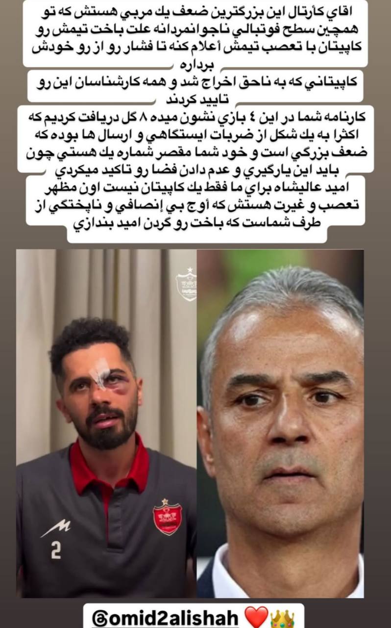 استوری سپهر حیدری علیه سرمربی جدید پرسپولیس!