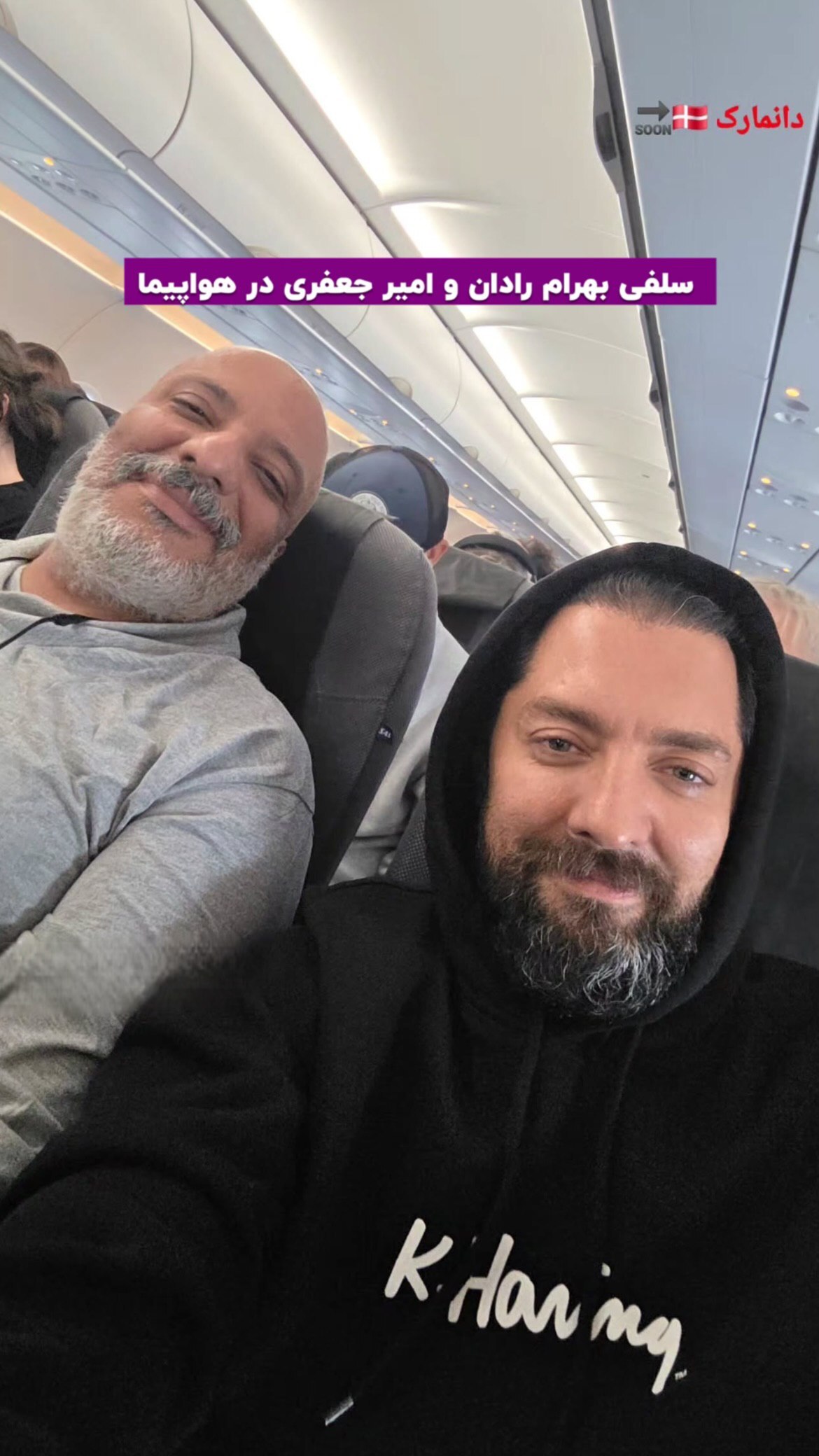 در آستانه سفری هنری به اروپا، بهرام رادان و امیر جعفری با چهرهای خسته، اما مصمم، سلفیای در هواپیما ثبت کردند؛ تصویری که آغازگر حضورشان در دانمارک برای اجرای نمایش «سیصد» است.